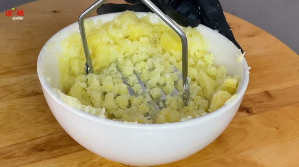 Haşlanan patatesleri püre kıvamına gelinceye kadar ezelim.
