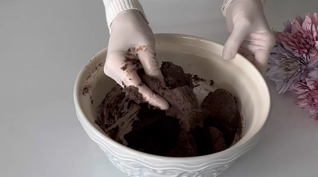 Uygun bir yoğurma kabına un, kakao, vanilya ve kabartma tozu ekleyip karıştıralım. Üzerine yumurta, pudra şekeri ve eritilmiş tereyağı ekleyip yoğuralım.