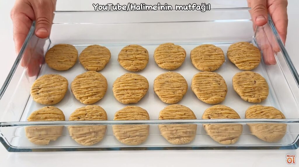 Şekil verdiğimiz tatlı hamurlarını fırın tepsisine dizelim ve önceden ısıtılmış 185 derece fırında pembeleşinceye kadar pişirelim.