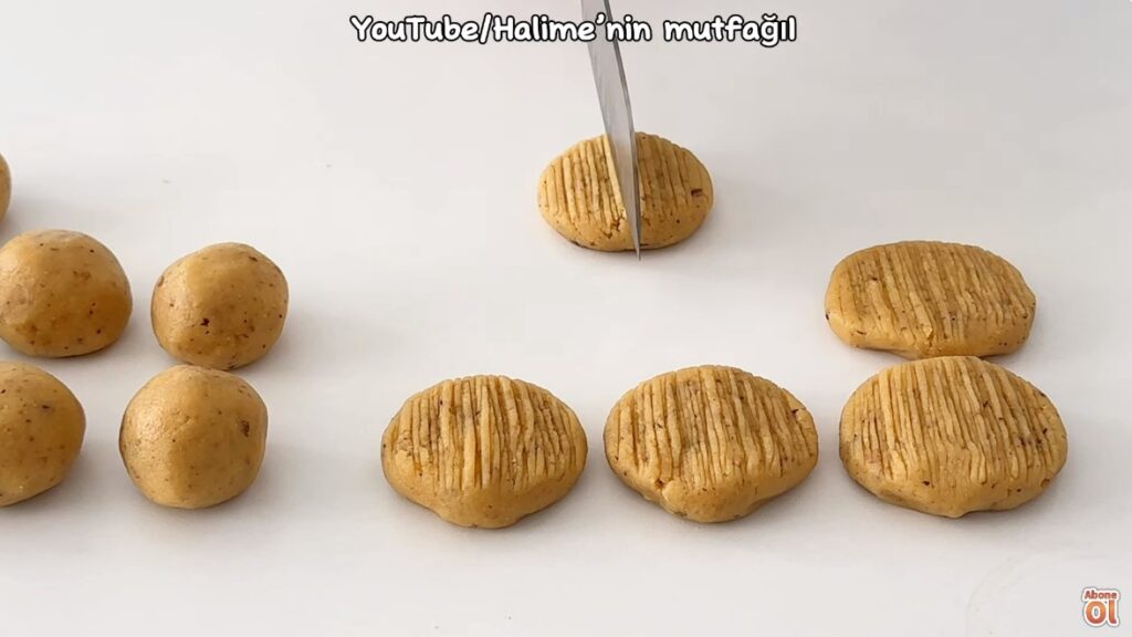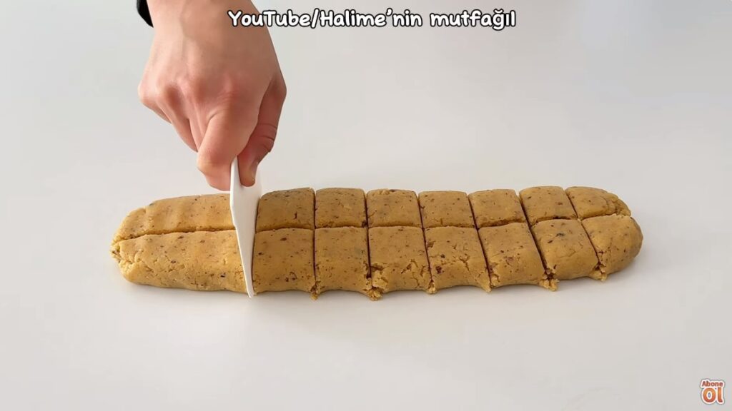 Hamuru silindir şeklinde uzatıp 18 eşit parçaya bölelim ve yuvarlayalım.