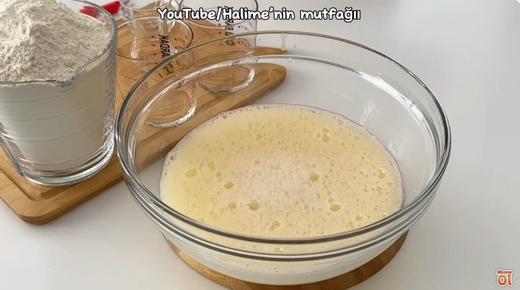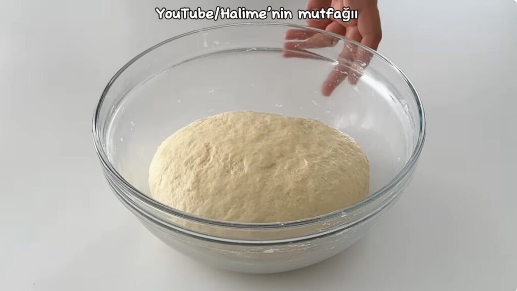 Üzerine kontrollü bir şekilde un ve tuz ekleyip yumuşak bir hamur yoğuralım. Üzerini kapatıp 10 dakika bekletelim.