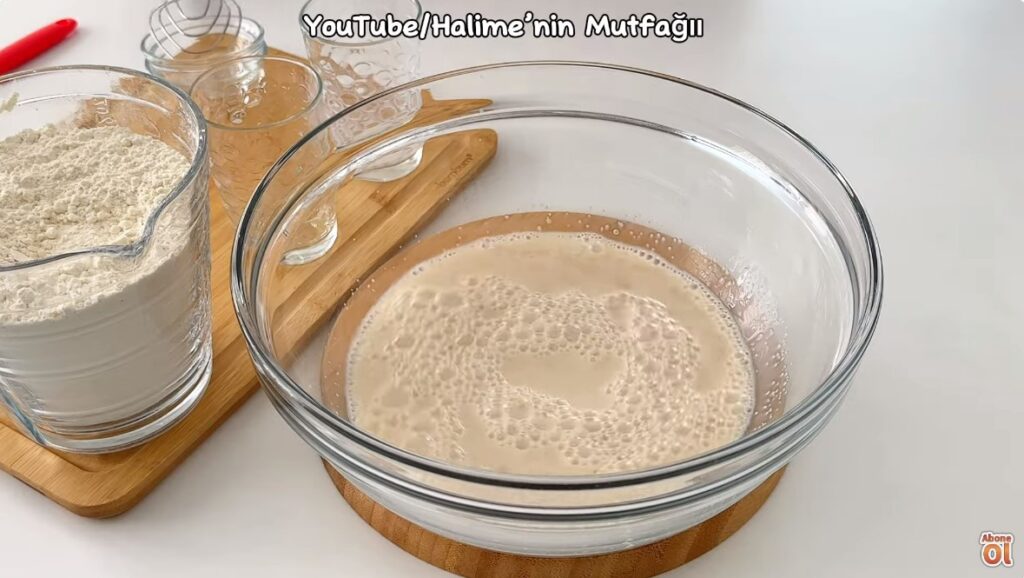 Uygun bir yoğurma kabına maya, şeker, süt ve su ekleyip karıştıralım