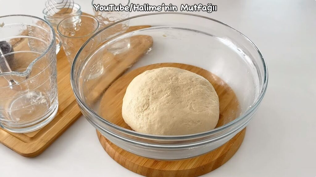 Üzerine sıvı yağ, kontrollü bir şekilde un ve tuz ekleyip yumuşacık bir hamur yoğuralım. Üzerini kapatıp hamur 2 kat oluncaya kadar bekletelim.