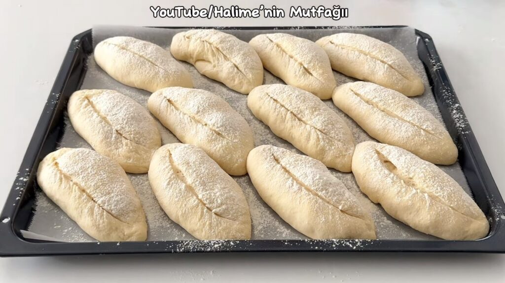 Şekil verdiğimiz ekmekleri yağlı kağıt serili fırın tepsisine dizelim. Üzerini kapatıp 1 saat bekletelim.