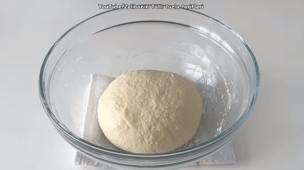 Uygun bir yoğurma kabına su, tuz ve un ekleyip ele yapışmayan bir hamur yoğuralım. Üzerini kapatıp 10 dakika bekletelim.