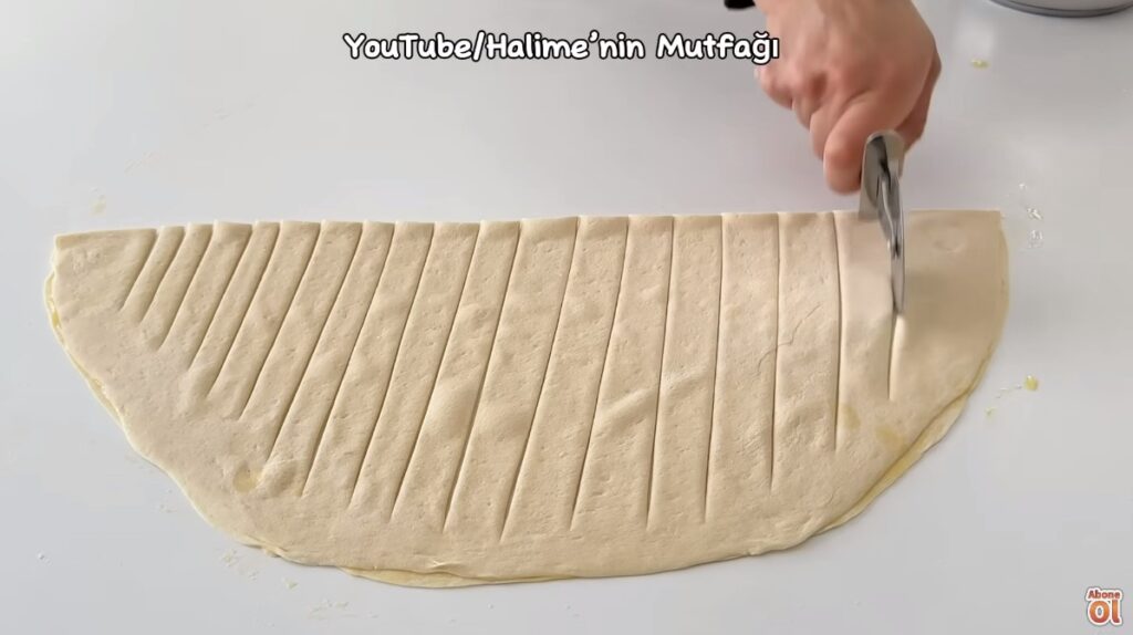 Hamuru 2 ye katlayıp bir rulet yardımı ile hamuru şeritler halinde keselim.