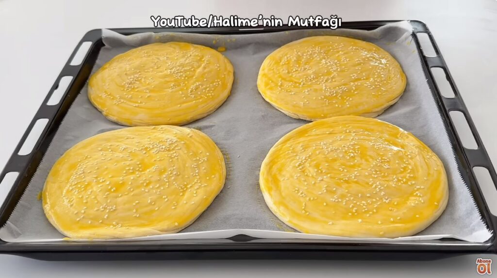 30 dakika sonra bezeleri merdane ile açalım. Yağlı kağıt serili fırın tepsisine dizip üzerine yumurta sarısı sürelim.