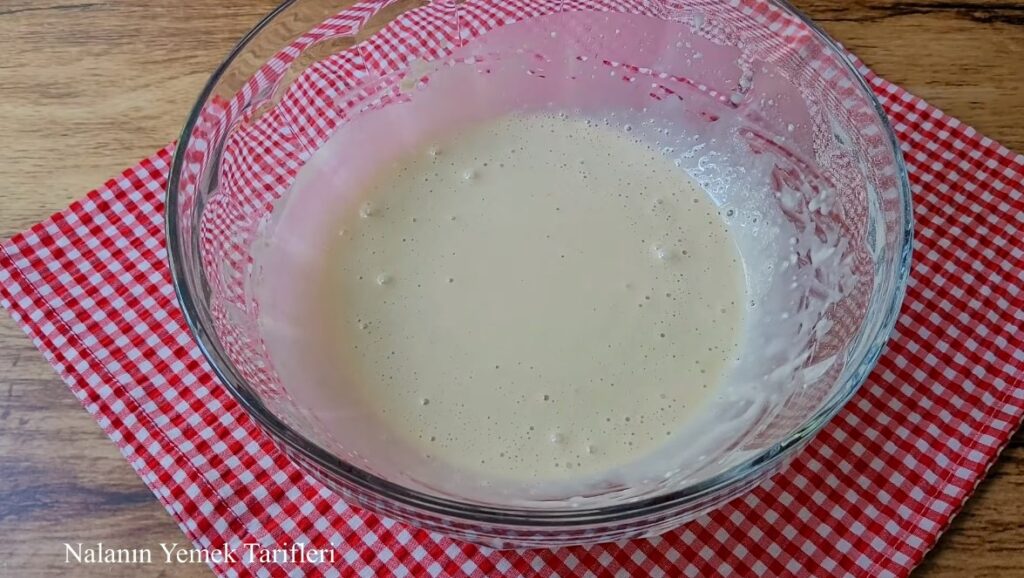 Uygun bir yoğurma kabına süt, su, maya ve şeker ekleyip karıştıralım. Üzerine 1 su bardağı un ekleyip karıştıralım ve üzerini kapatıp 20 dakika bekletelim.