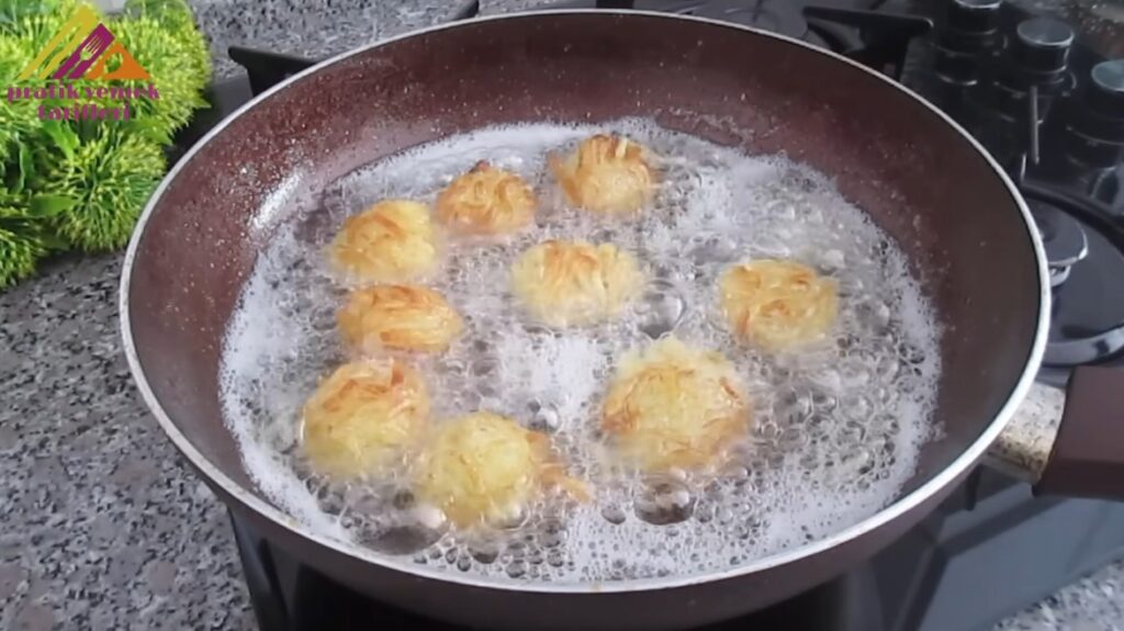Şekil verdiğimiz patates toplarını bol ve kızgın bir yağın içerisinde kızartalım.