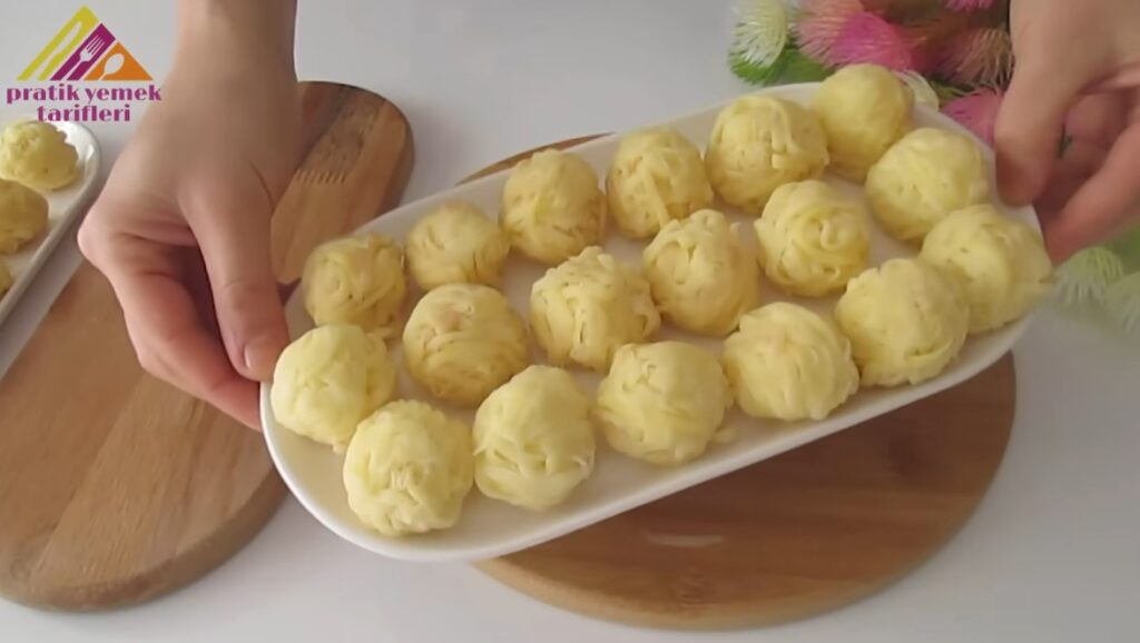Patatesten parçalar alıp yuvarlayarak şekil verelim ve patateslerin suyunu sıkalım.