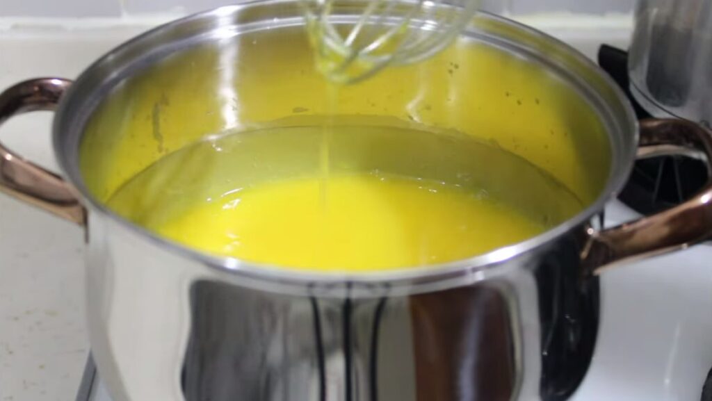 Jölesi için uygun bir tencereye nişasta, şeker ve portakal suyu ekleyip kaynayıp kıvam alıncaya kadar pişirelim.