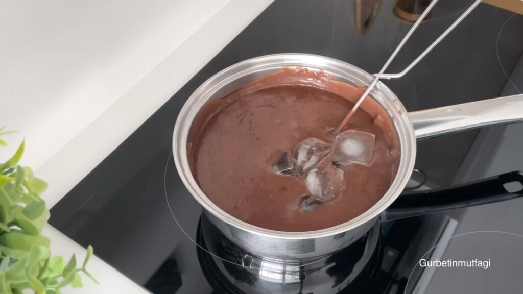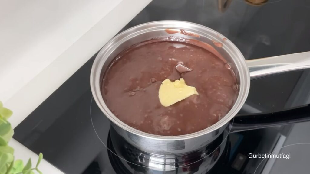 Uygun bir tencereye elekte elenmiş kakao, un, nişasta, şeker, süt ve yumurta sarısı ekleyip karıştıralım. Orta ateşte sürekli karıştırıp kaynayıp kıvam alıncaya kadar pişirelim. Üzerine tereyağı ve çikolata ekleyip karıştıralım.
