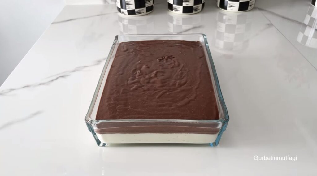 Supangleyi muhallebinin üzerine yayarak dökelim ve buzdolabında 4-5 saat bekletelim.